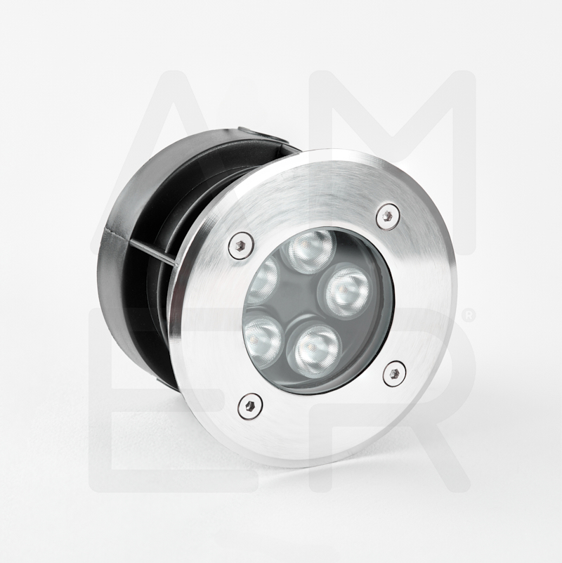 سبوت خارجى بقدرة 5 وات وإضاءة LED بلون وورم. متوفر باللون الفضي وخامة ستانلس ستيل.