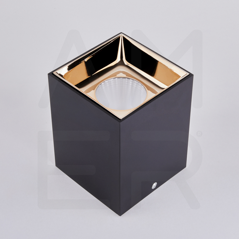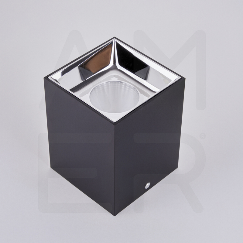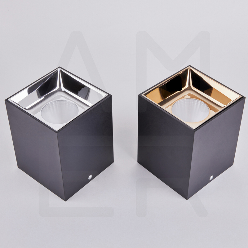 مصباح سقف مربع أنيق مصنوع من الألومنيوم، متوفر باللون أسود×فضي بكود AL12950 وباللون أسود×ذهبي بكود AL12956. يتميز بأبعاد 12 سم للطول ووش 10×10 سم، ويعمل بقدرة 15 وات على تيار 220 فولت. يوفر إضاءة ليد دافئة بلون 3000K، ويأتي بضمان سنة، ومنشأه الصين.